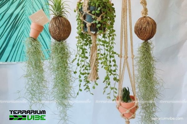 Cây không khí tóc tiên rất phù hợp với phong cách terrarium treo và tường rêu