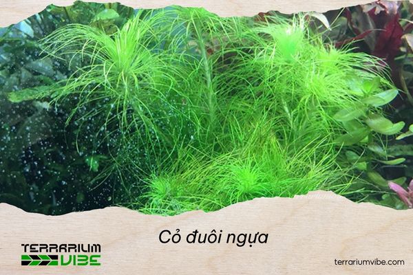 Loài cây thủy sinh này cỏ vẻ đẹp vô cùng độc đáo với thân mảnh, phân đốt, mọc thẳng đứng như những chiếc đuôi ngựa nhỏ, tạo nên nét đẹp cổ điển mà đầy sức hút. Cỏ đuôi ngựa phát triển nhanh, dễ dàng thích nghi với nhiều môi trường, rất phù hợp để làm điểm nhấn trong terrarium hay hồ cá.