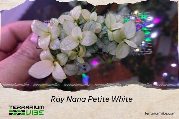 Nana Petite White nổi bật trong terrarium nhờ màu lá trắng hiếm có và kích thước nhỏ gọn. Với lá trắng bóng, có lớp lông mỏng tạo hiệu ứng xám nhạt, cây là điểm nhấn tinh tế ở tiền cảnh hoặc trung cảnh của hệ sinh thái thủy sinh.
